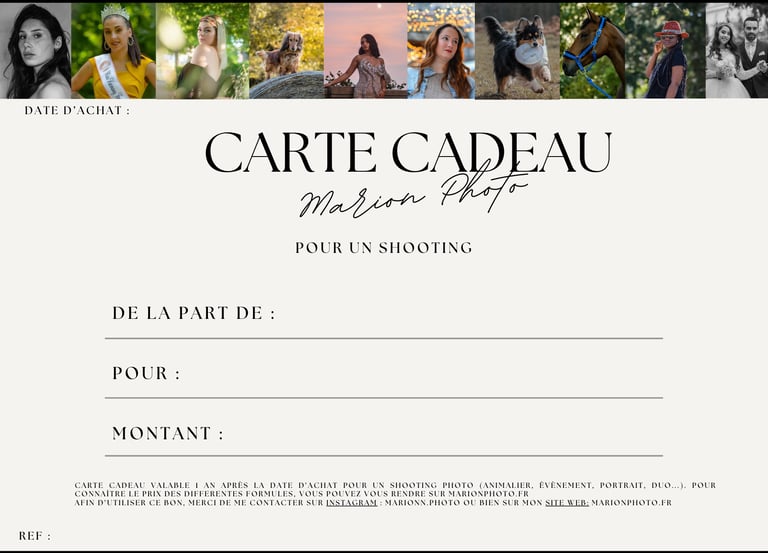 Découvrez les cartes cadeaux numériques permettant d'offrir un shooting photo à vos proches.